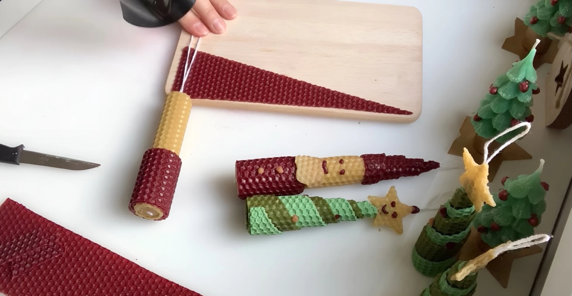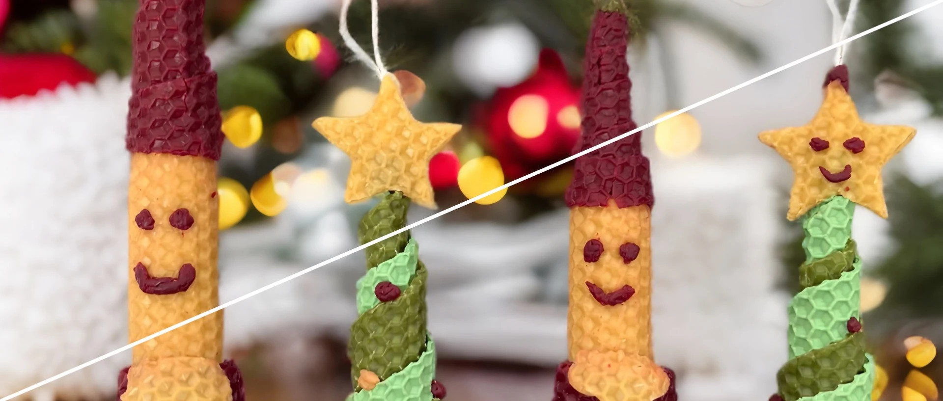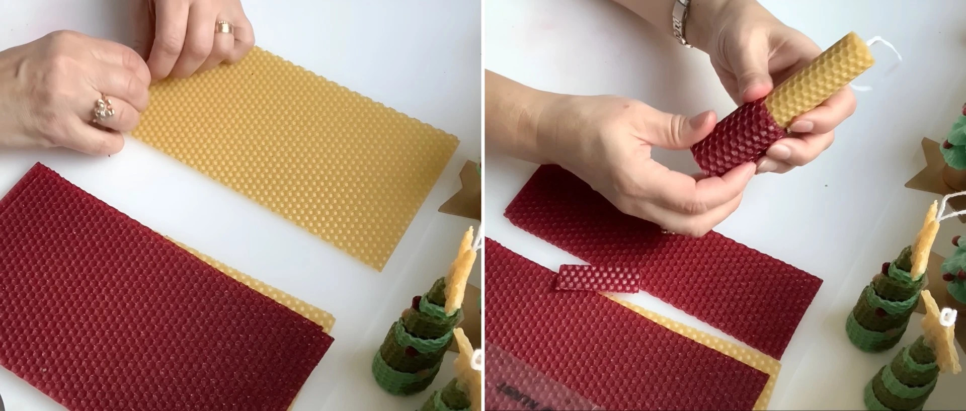 Cum facem lumânări în formă de brăduț sau Moș Crăciun folosind foi din ceară de albine tip fagure…