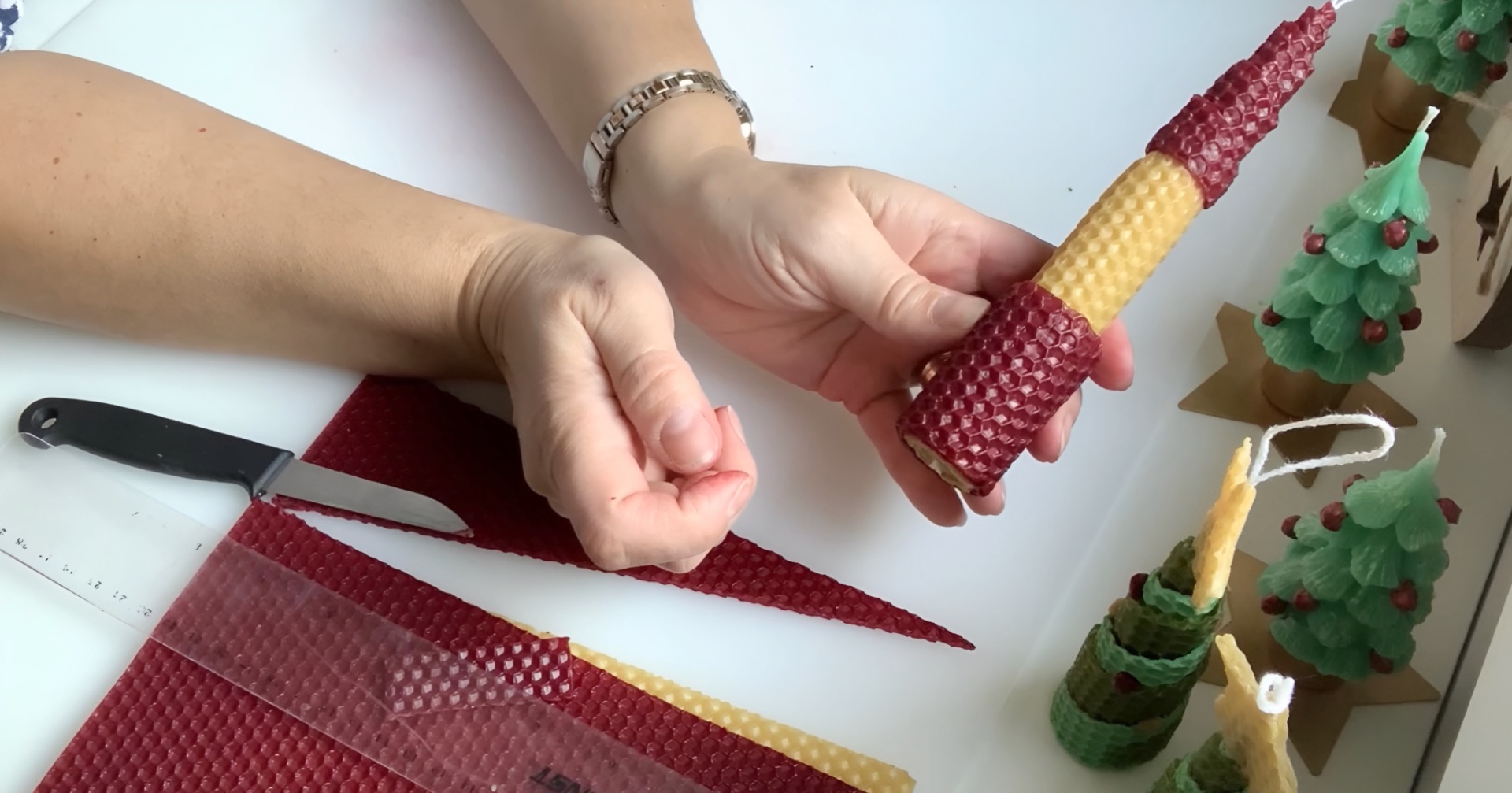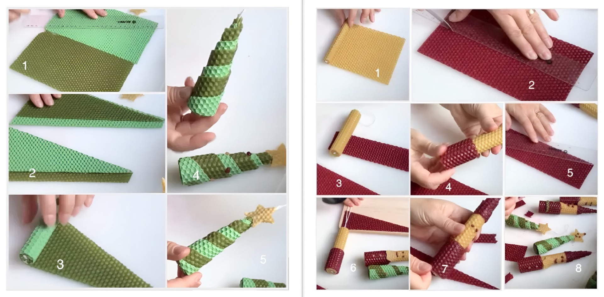 Cum facem lumânări în formă de brăduț sau Moș Crăciun folosind foi din ceară de albine tip fagure…