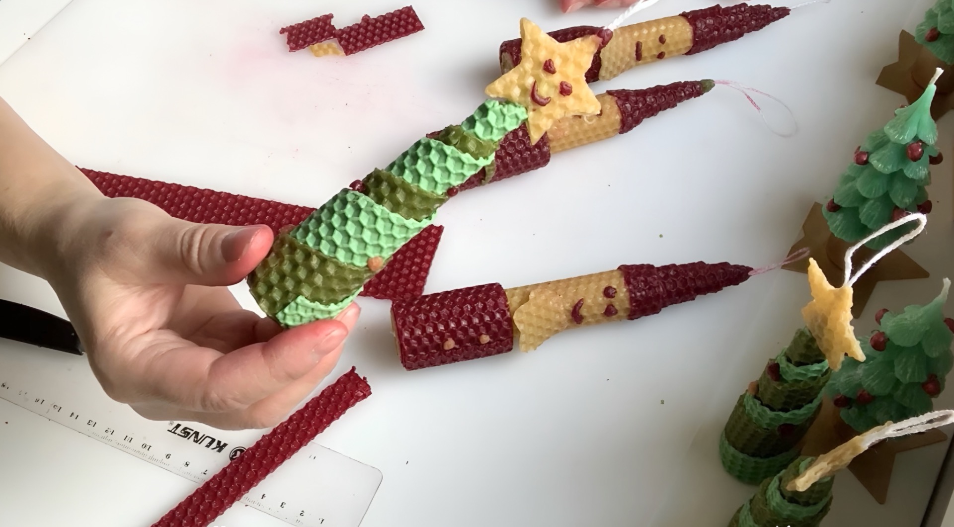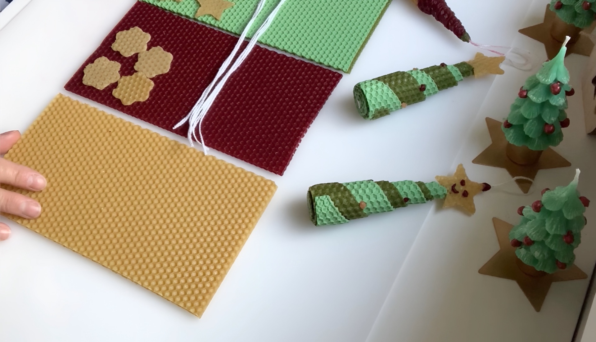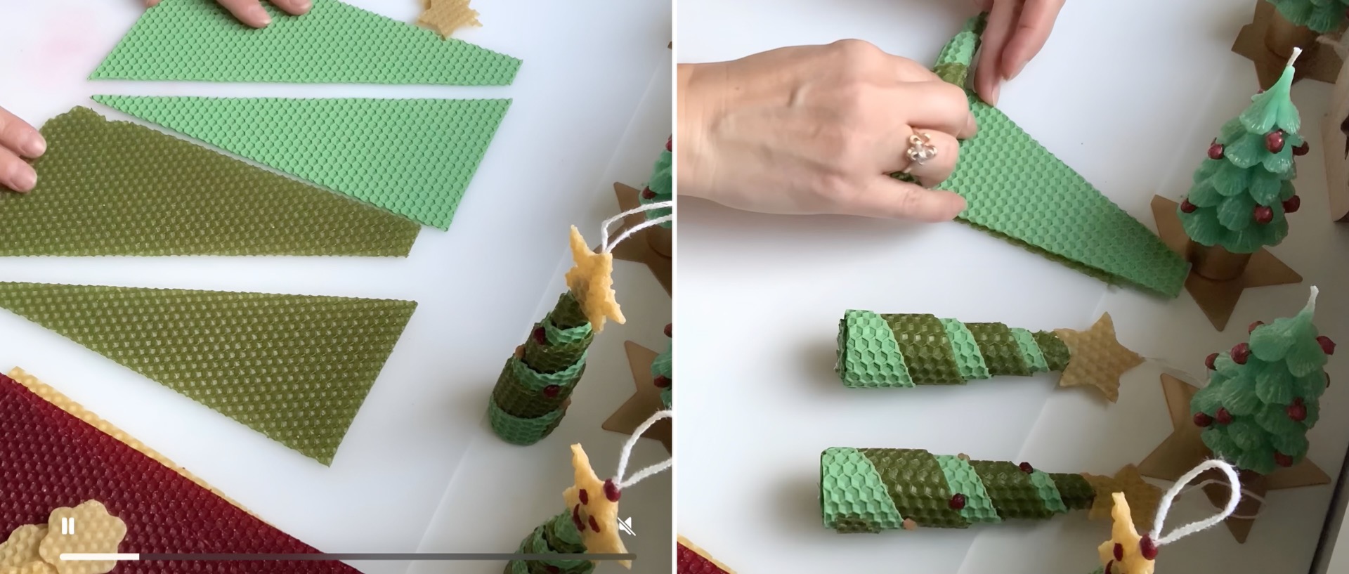 Cum facem lumânări în formă de brăduț sau Moș Crăciun folosind foi din ceară de albine tip fagure…