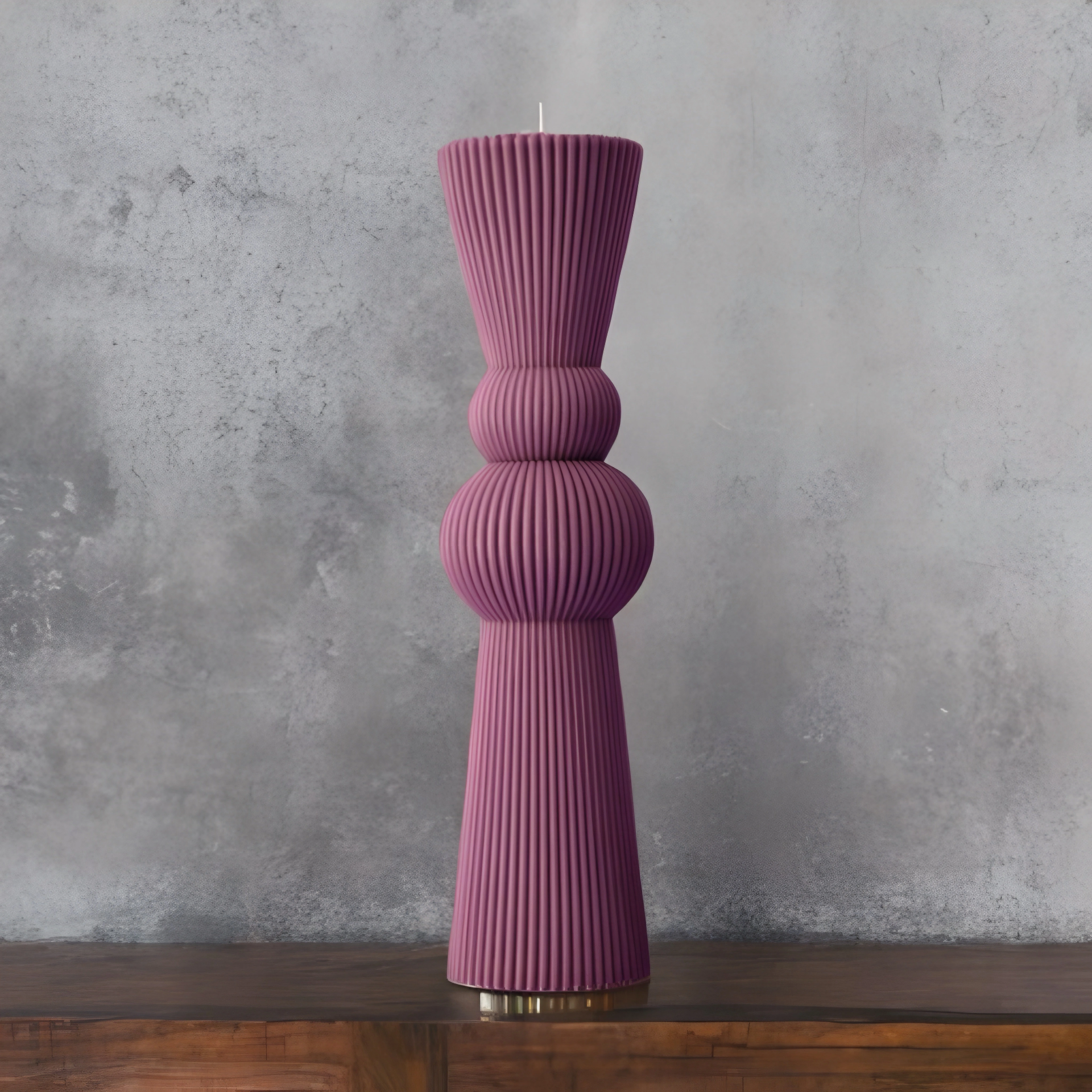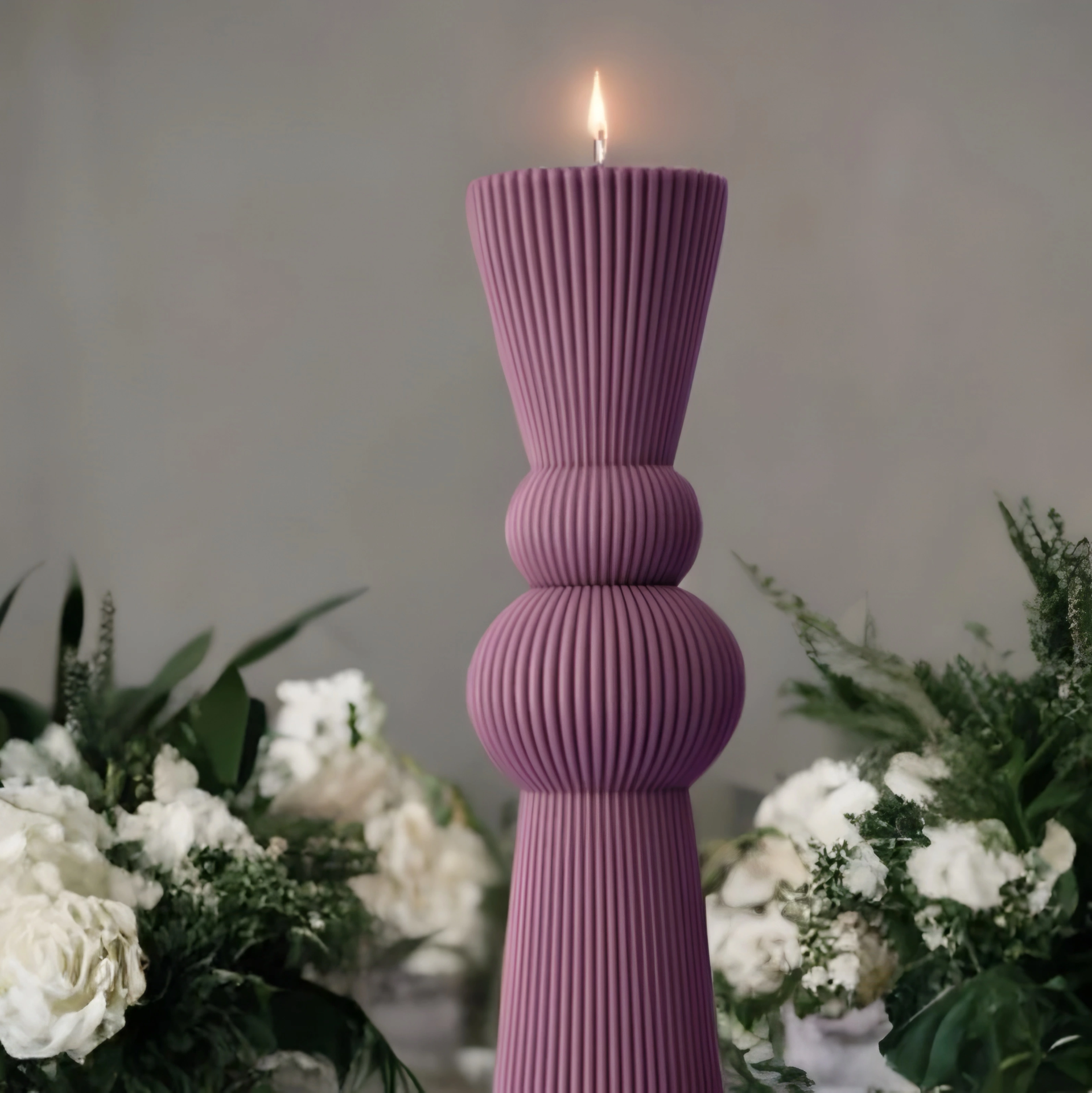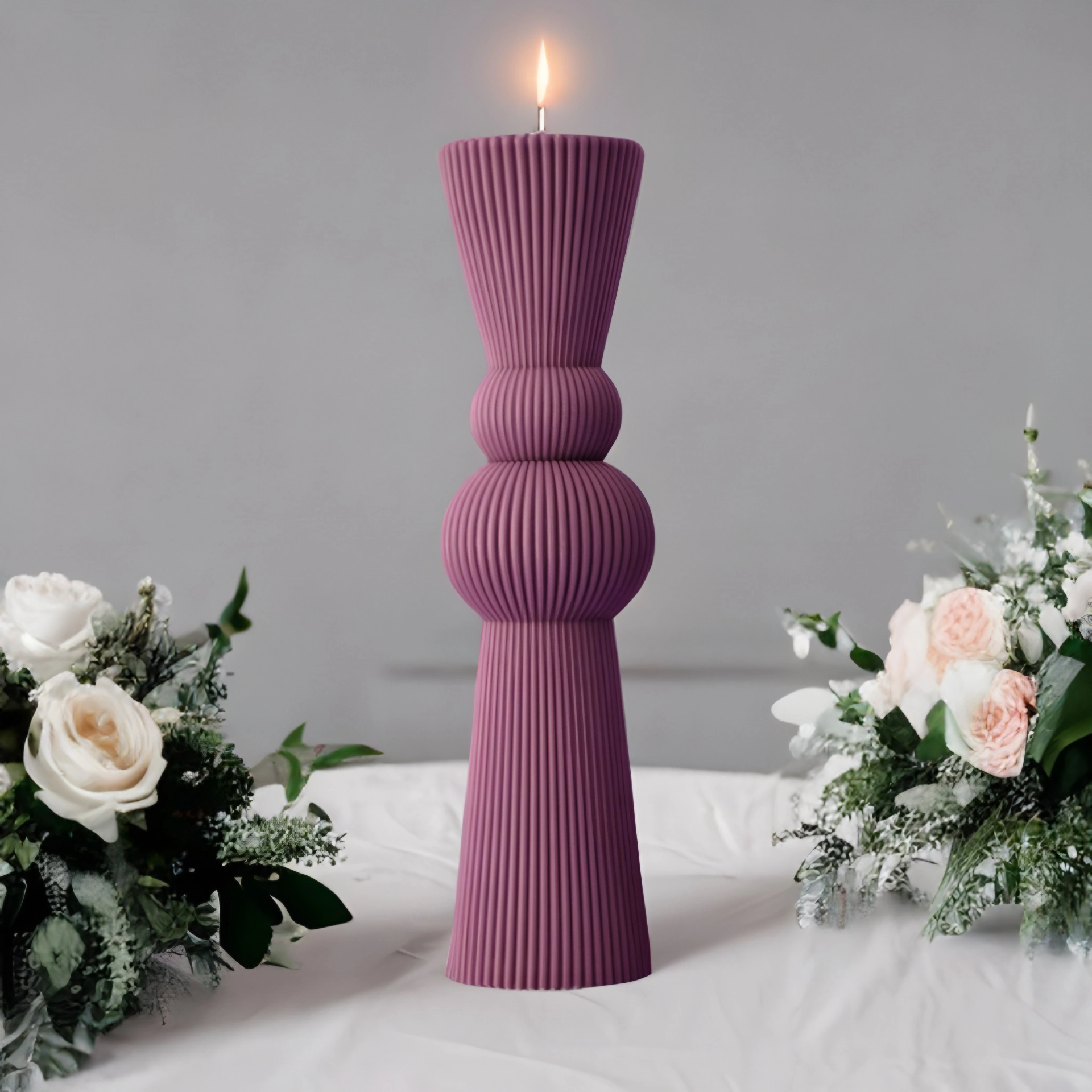 Decorative candle for wedding and baptism, made by molding, with a subtle fragrance and purple wine color.