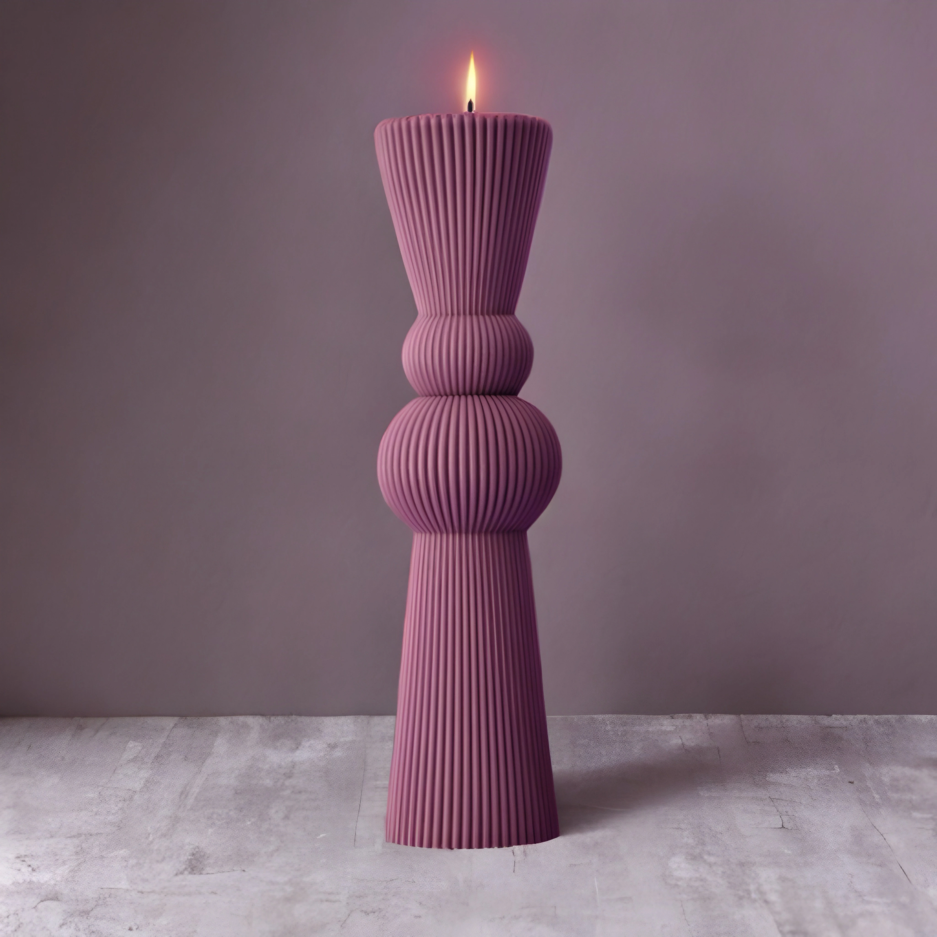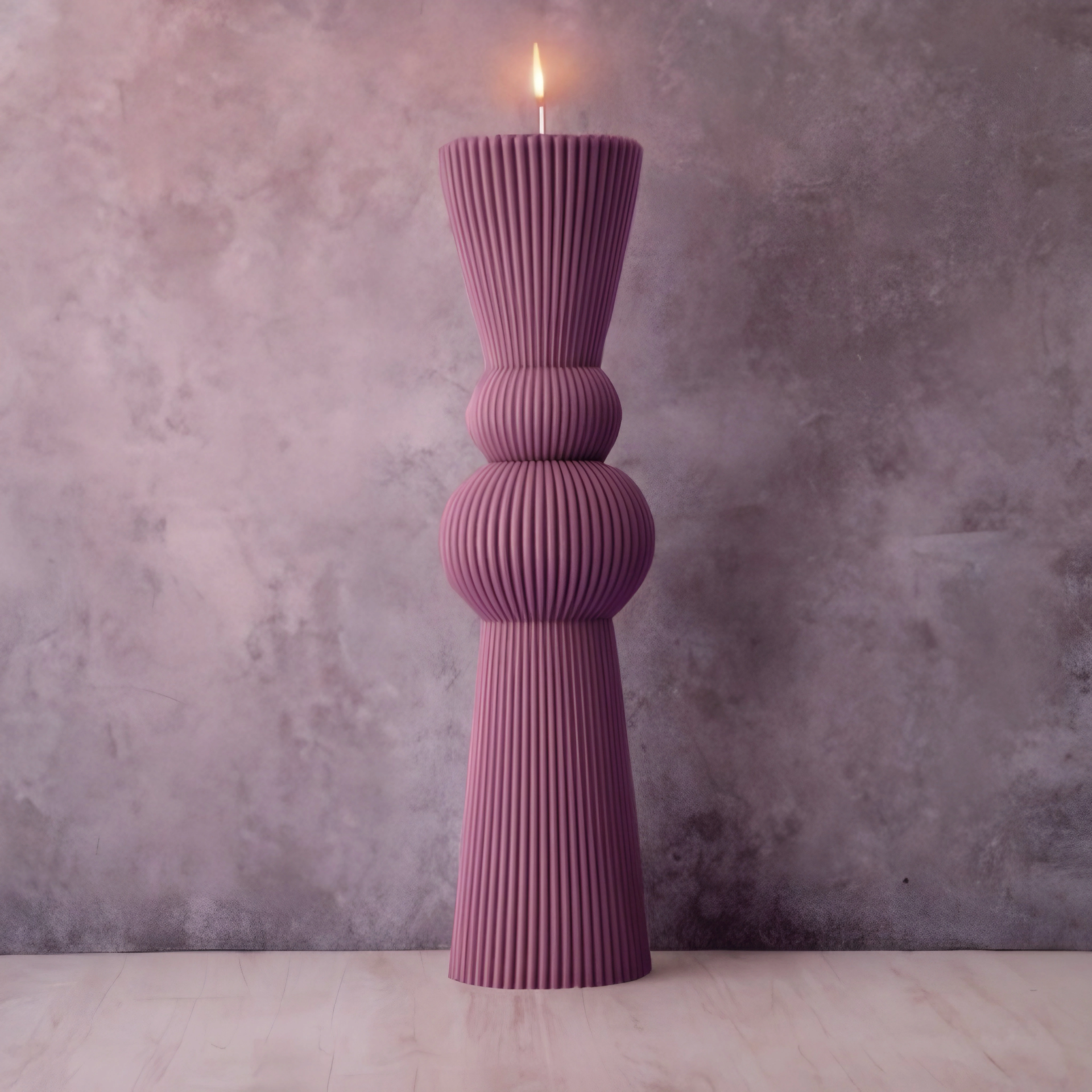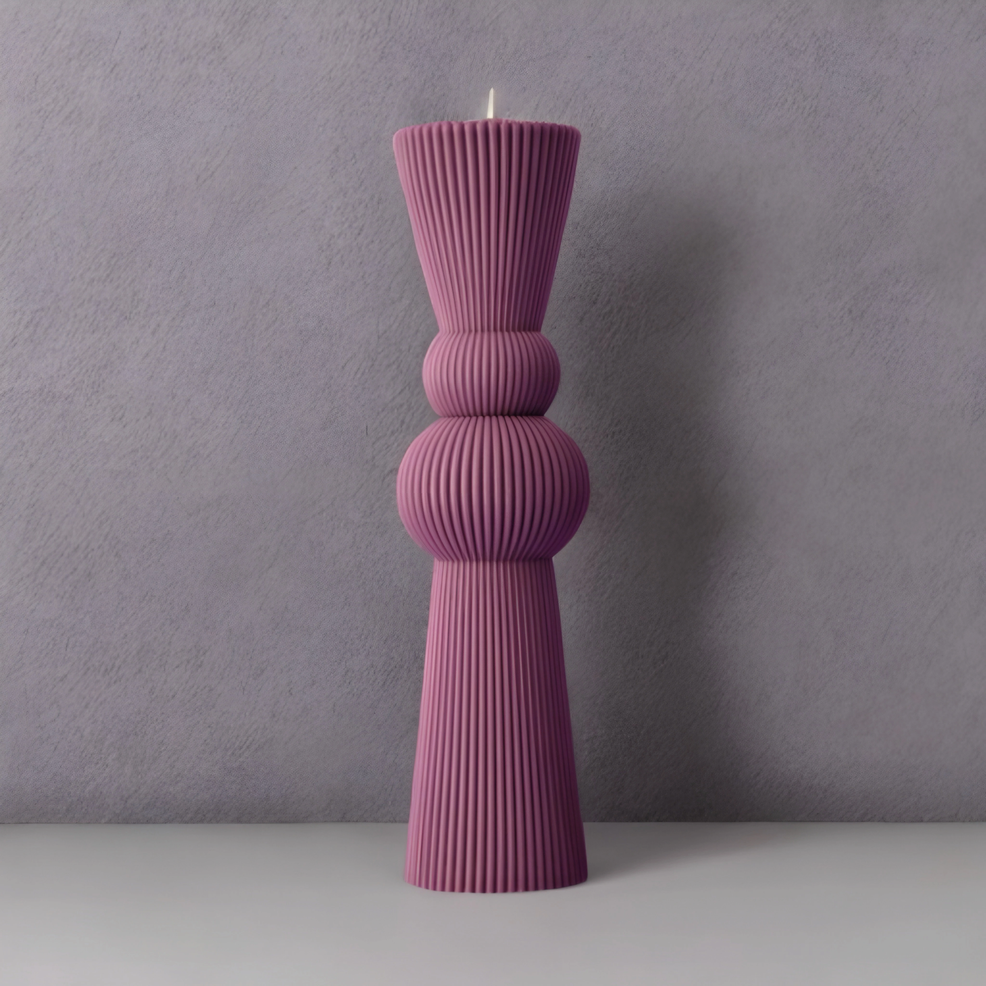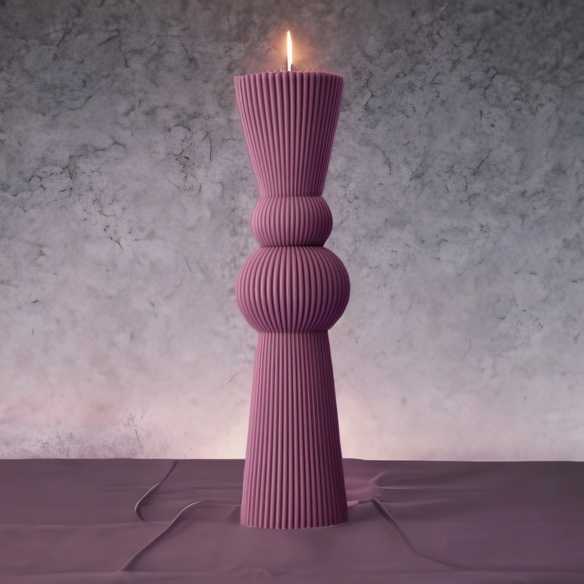 Decorative candle for wedding and baptism, made by molding, with a subtle fragrance and purple wine color.