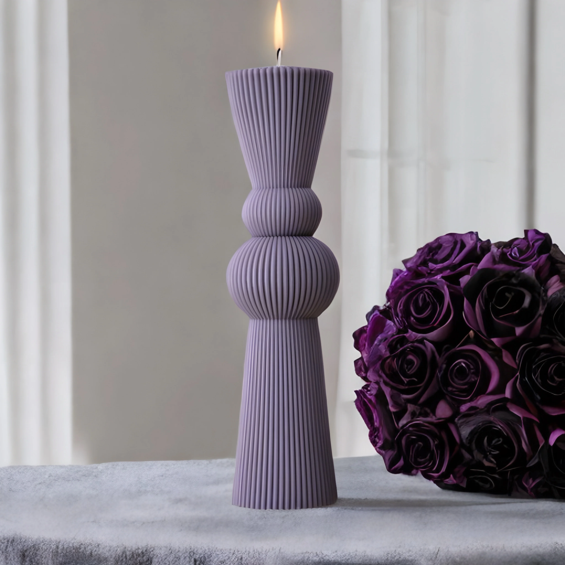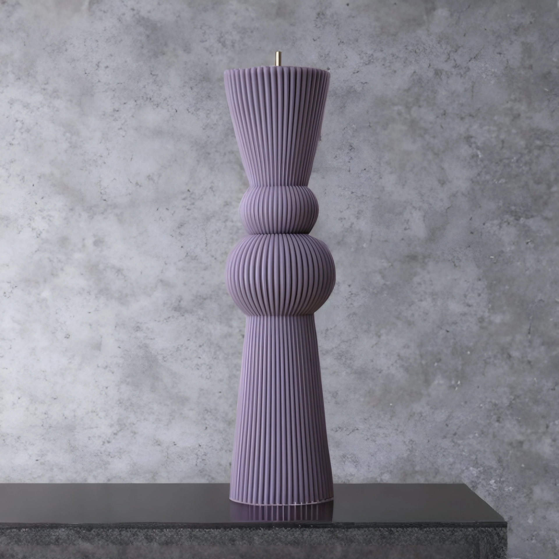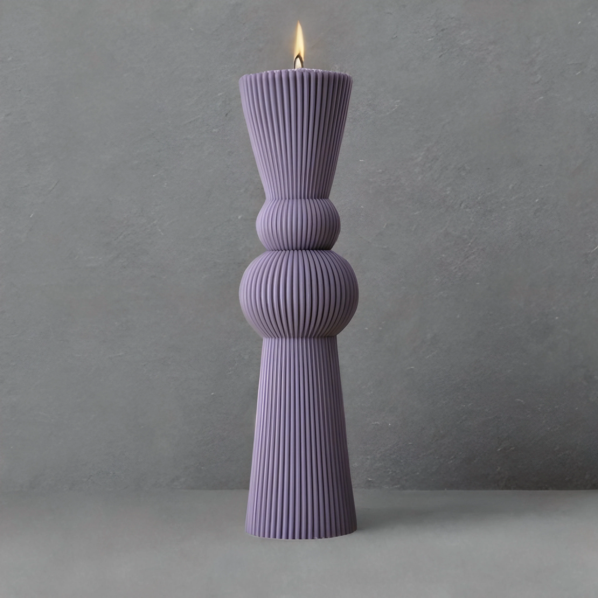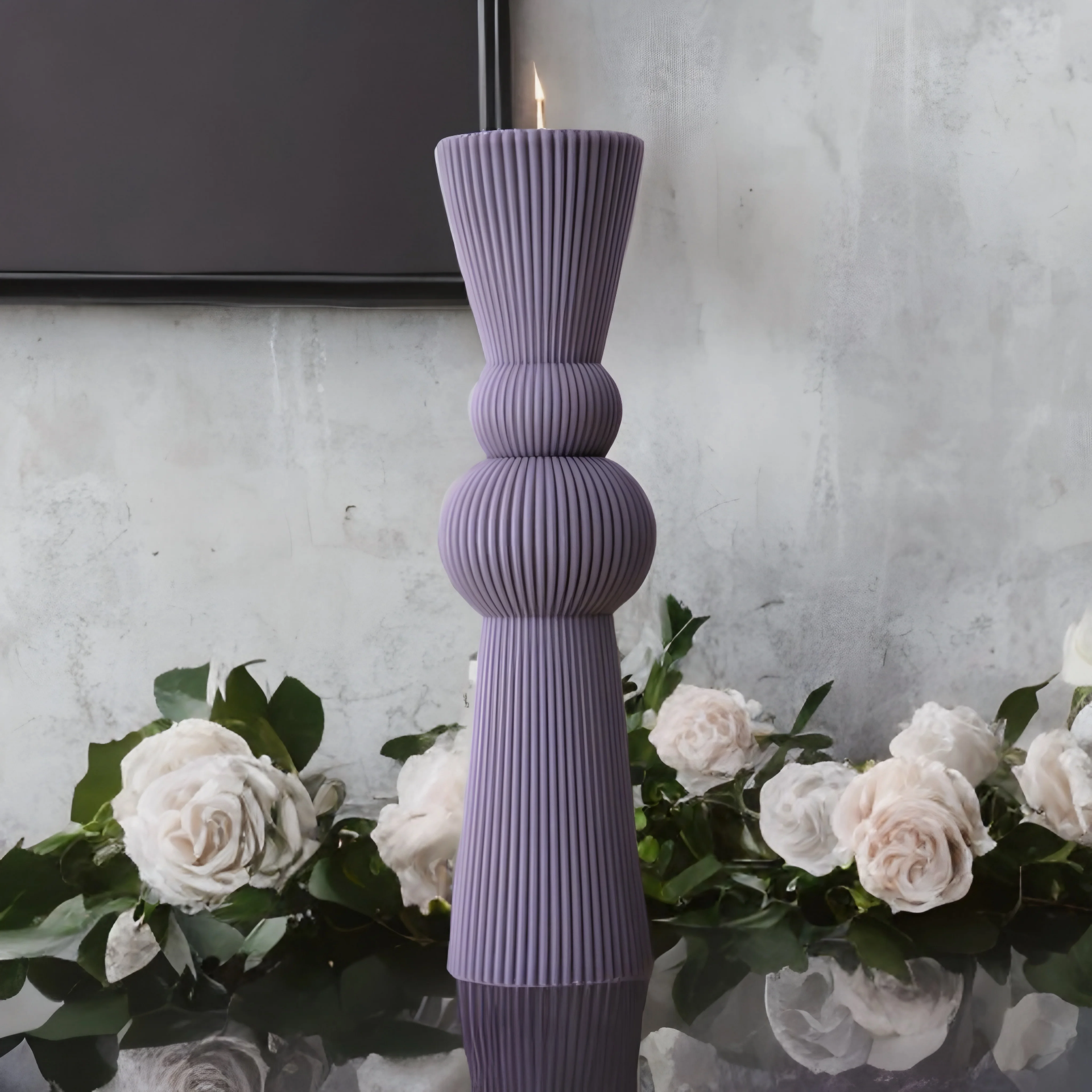 Decorative candle for wedding and baptism, crafted by mold casting, with a subtle fragrance, in lavender color.