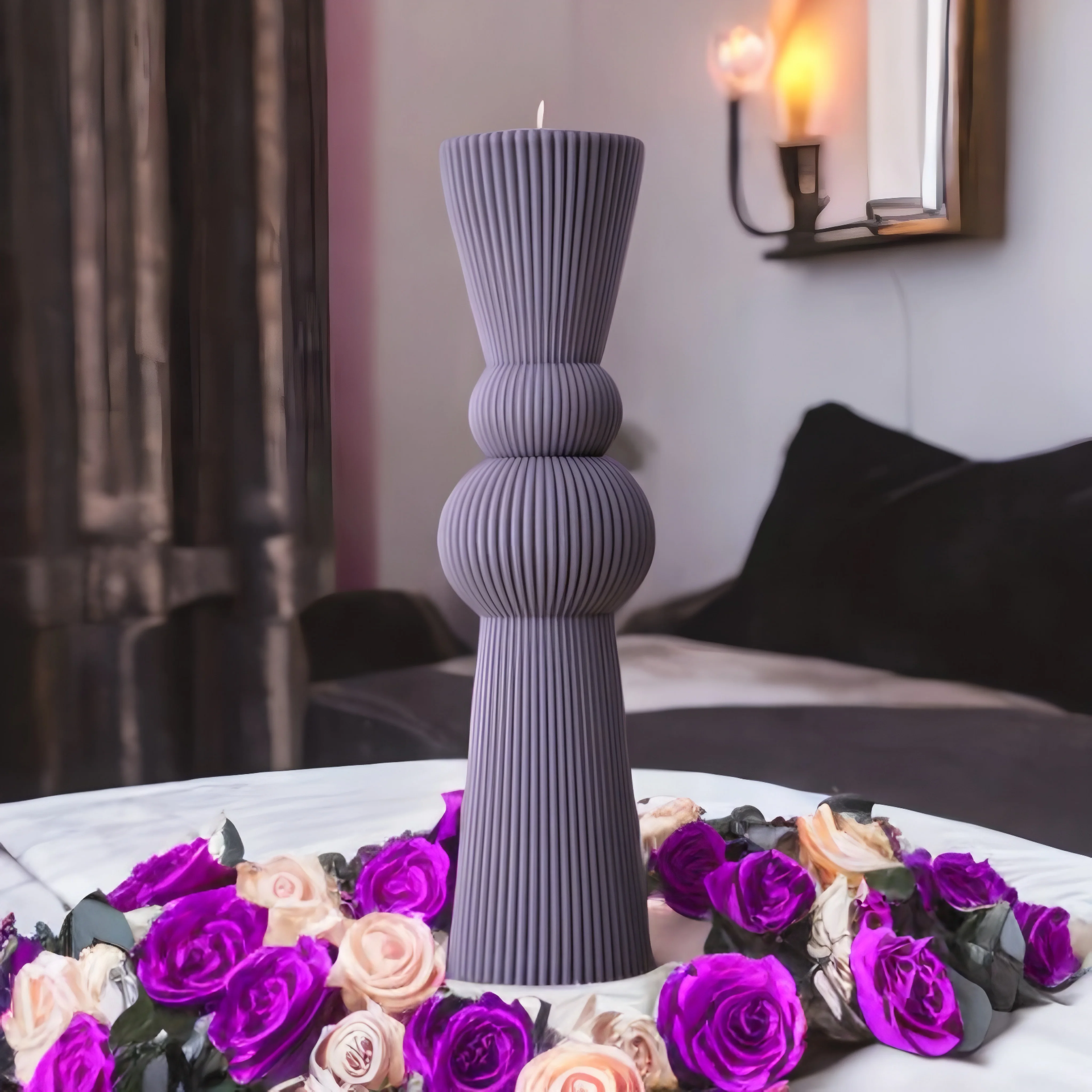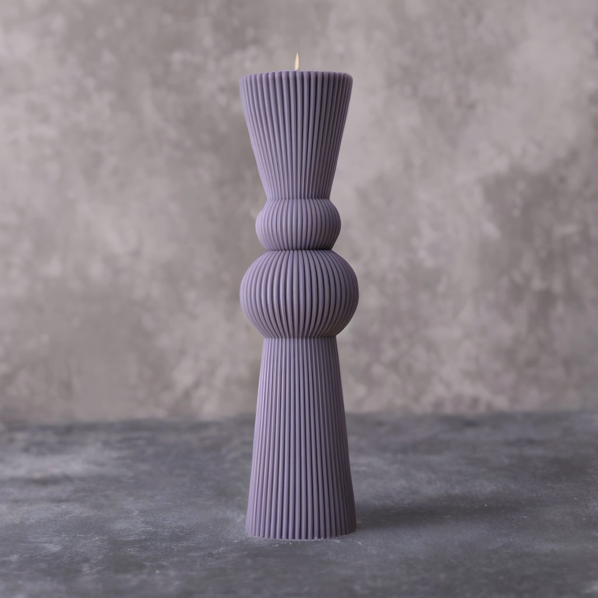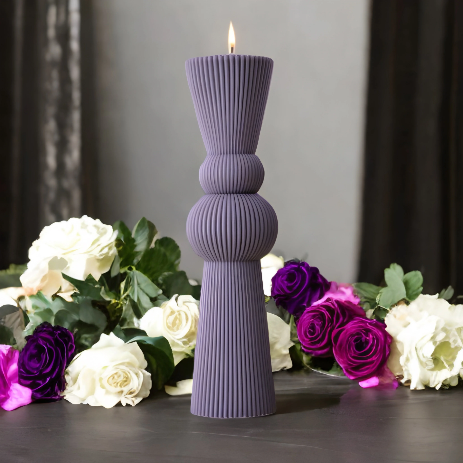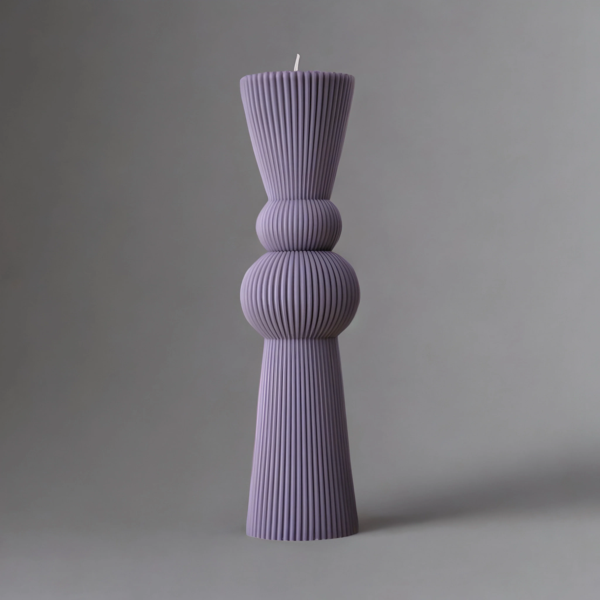 Decorative candle for wedding and baptism, crafted by mold casting, with a subtle fragrance, in lavender color.