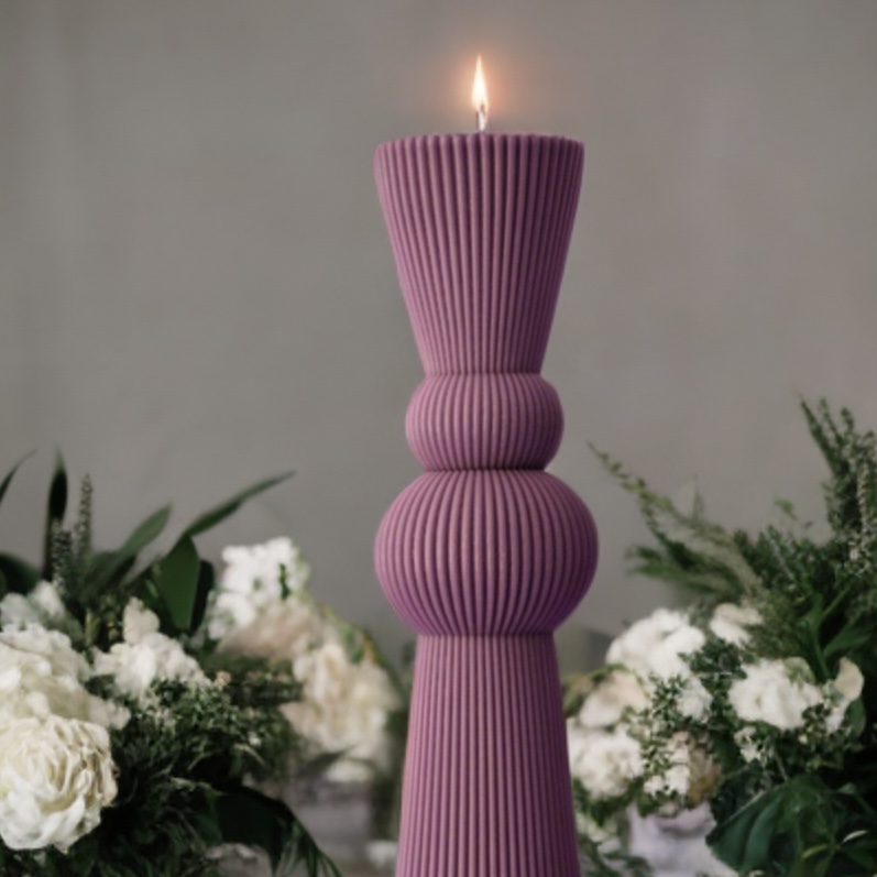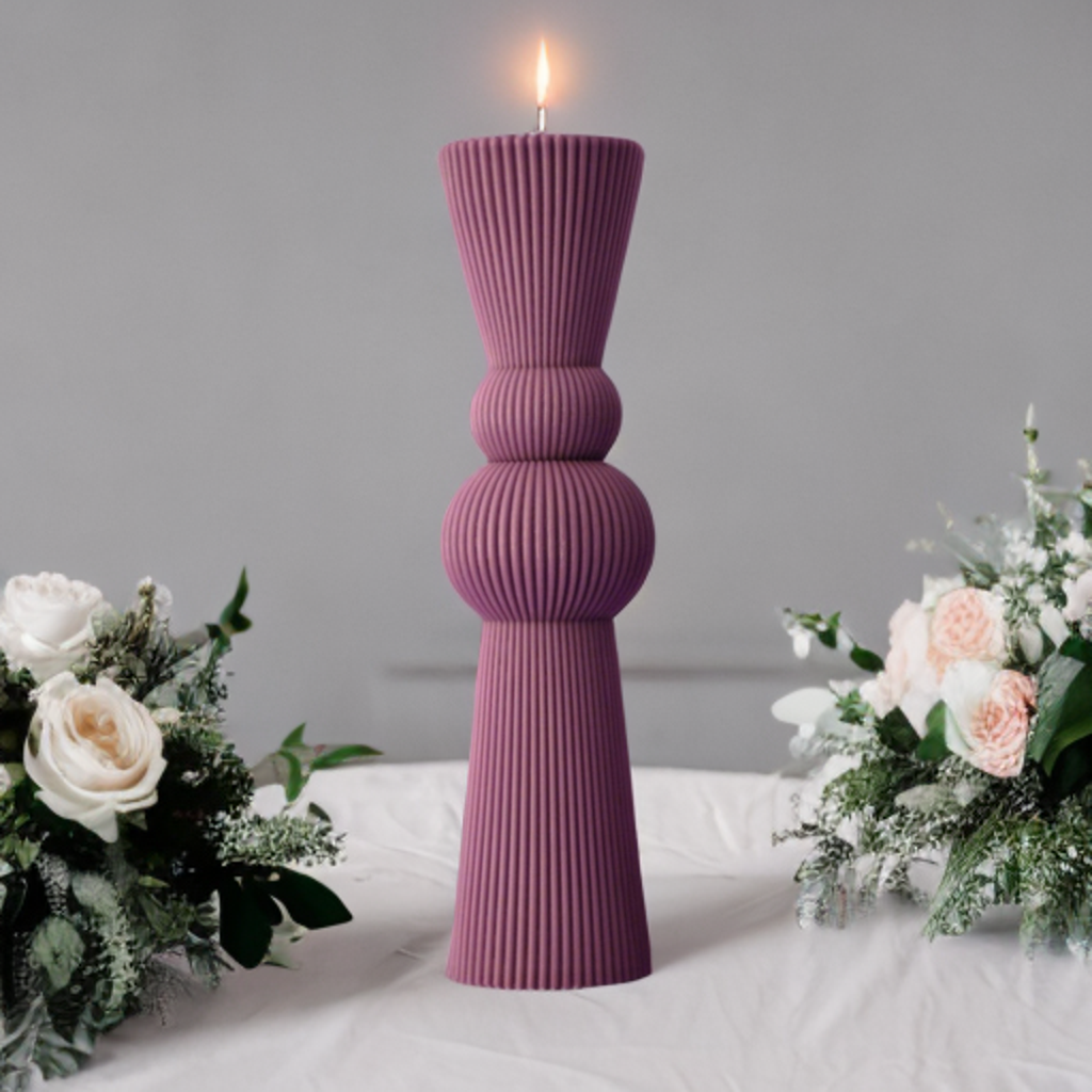 Lumanare decorativă / nuntă / botez, realizată prin turnare în matrițe, discret parfum, culoare purple wine.