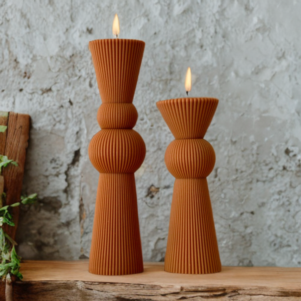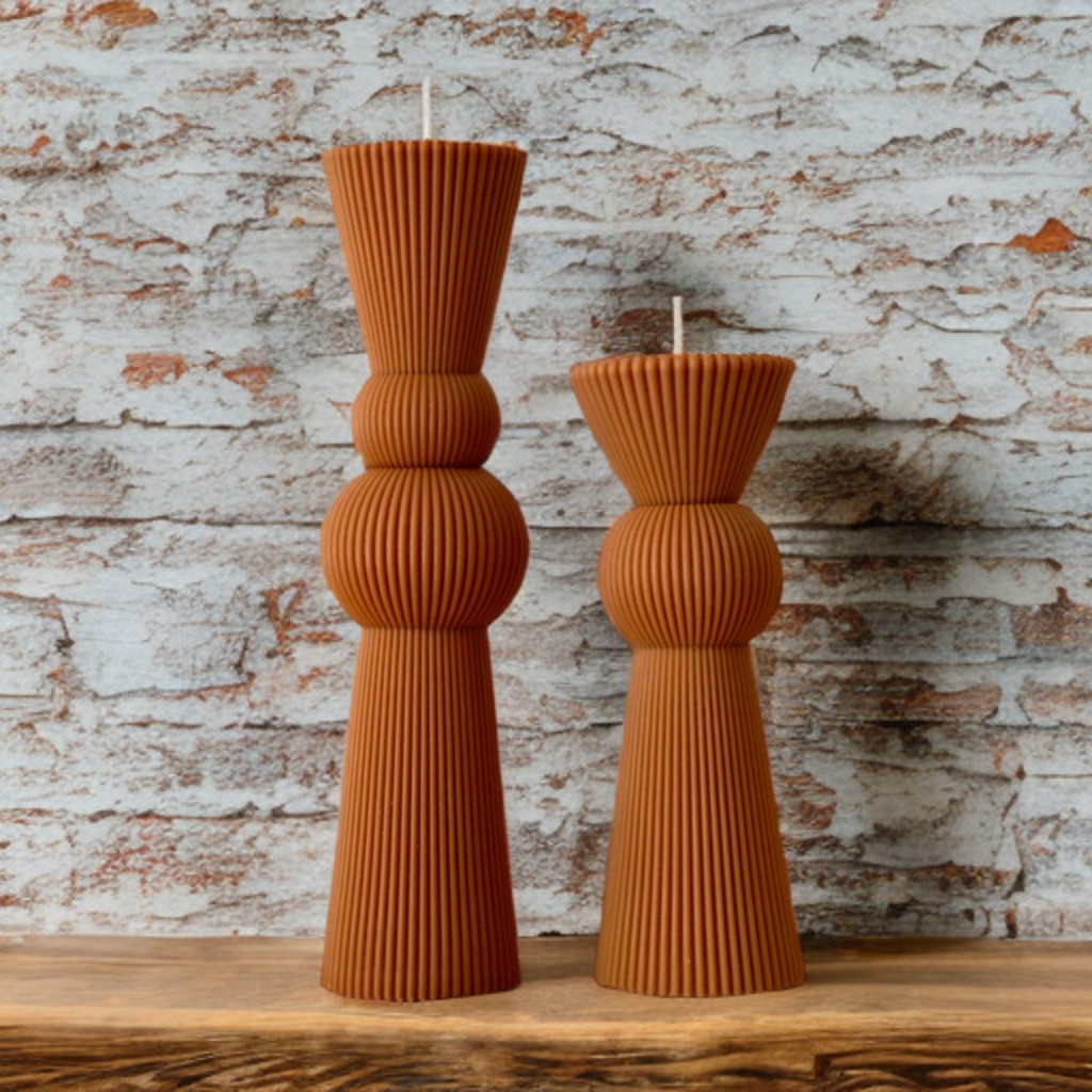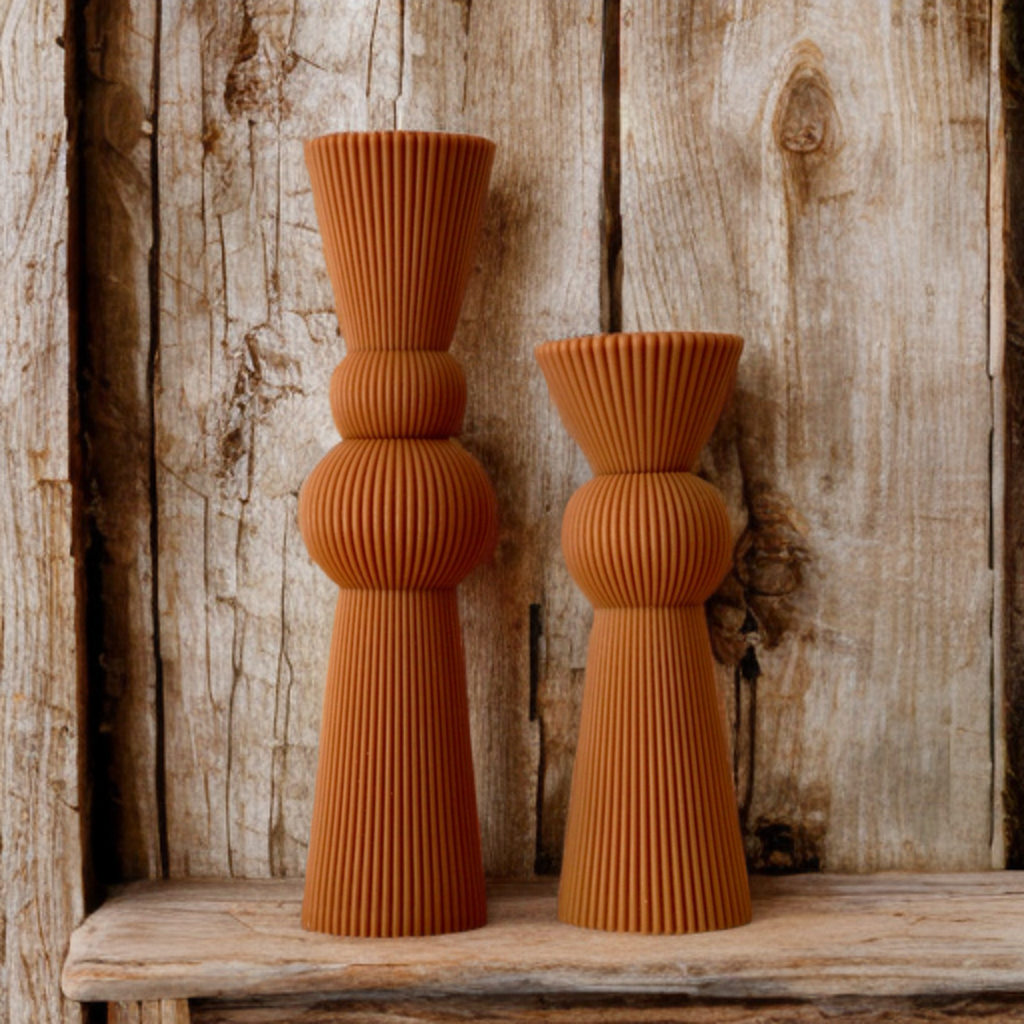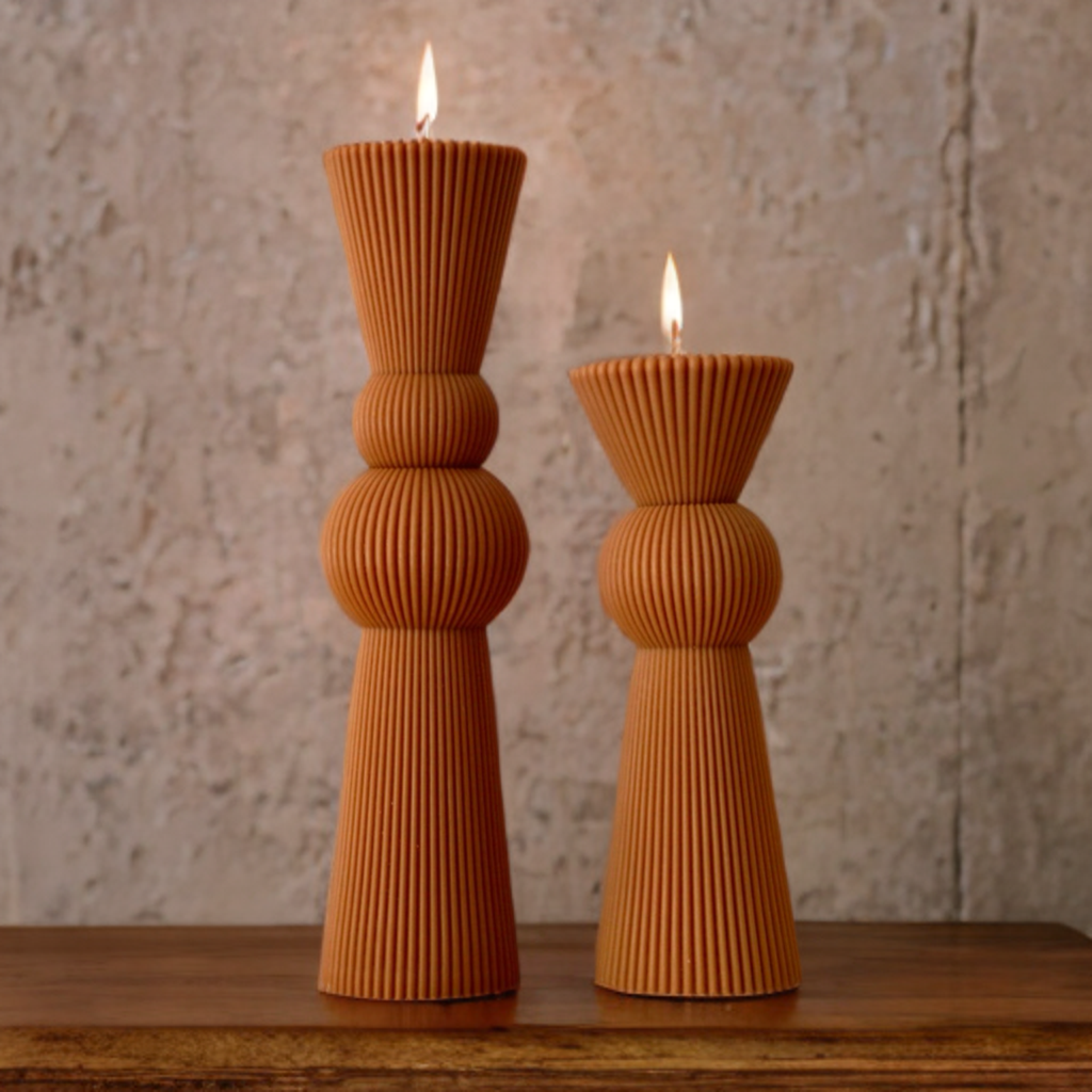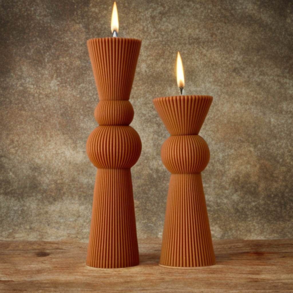 Set lumânări decorative / nuntă / botez, realizate prin turnare în matrițe, discret parfum, culoare galben brun.