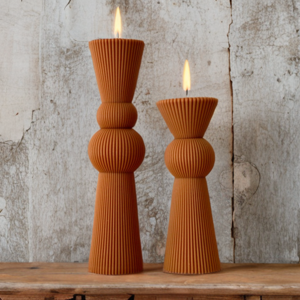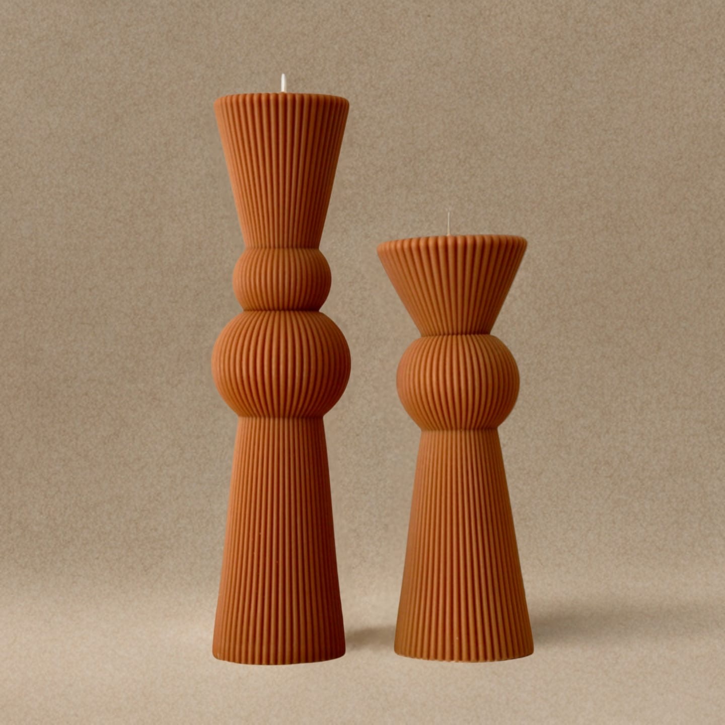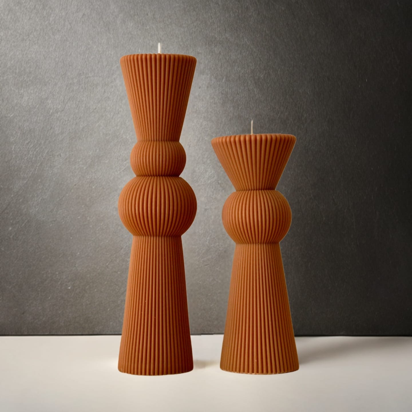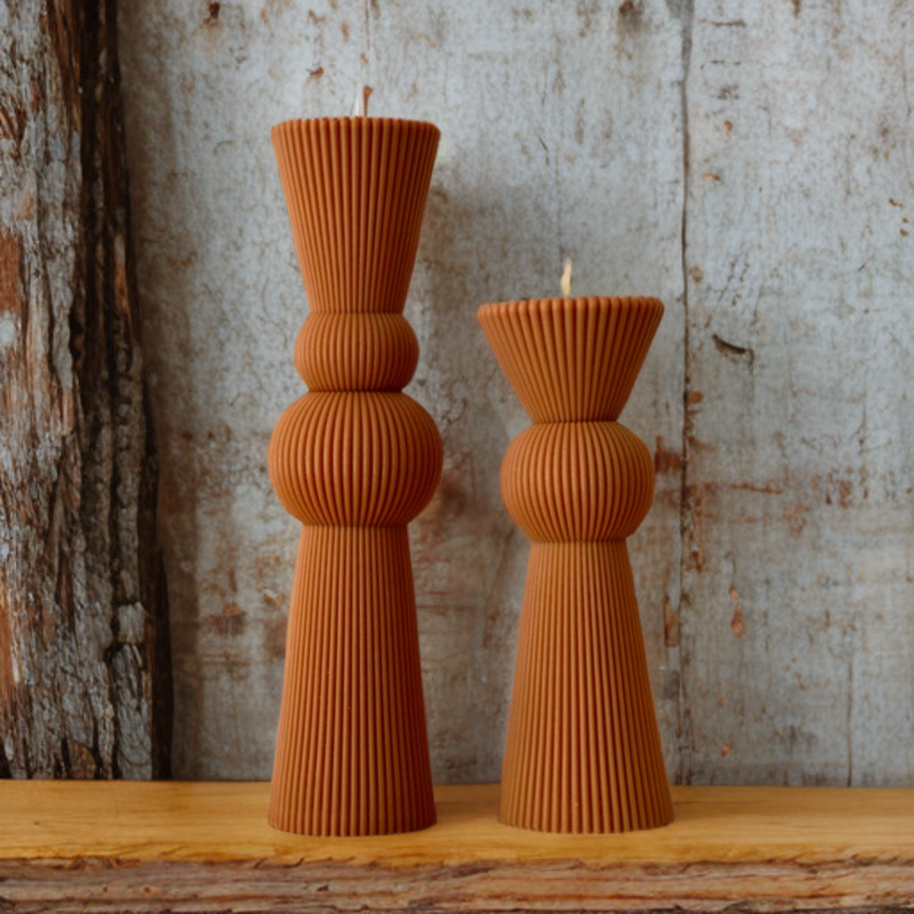 Set lumânări decorative / nuntă / botez, realizate prin turnare în matrițe, discret parfum, culoare galben brun.