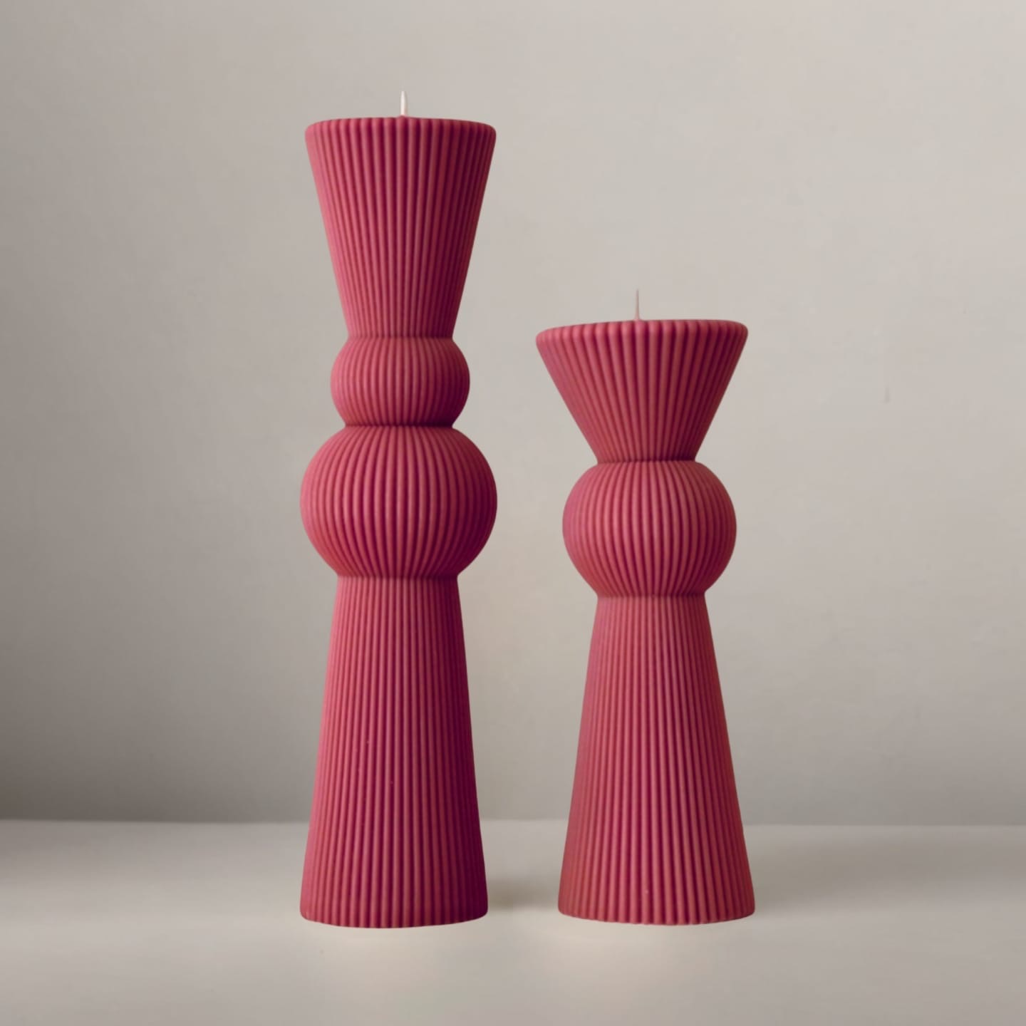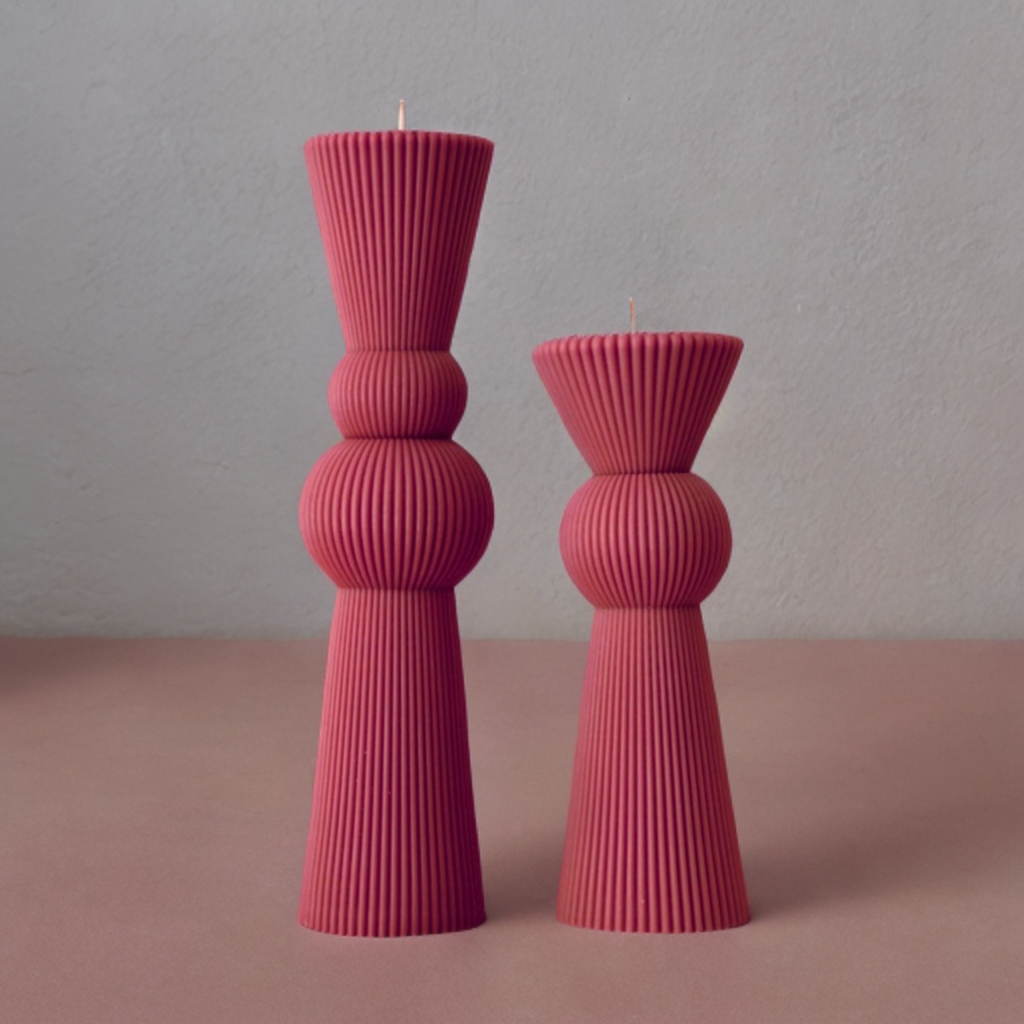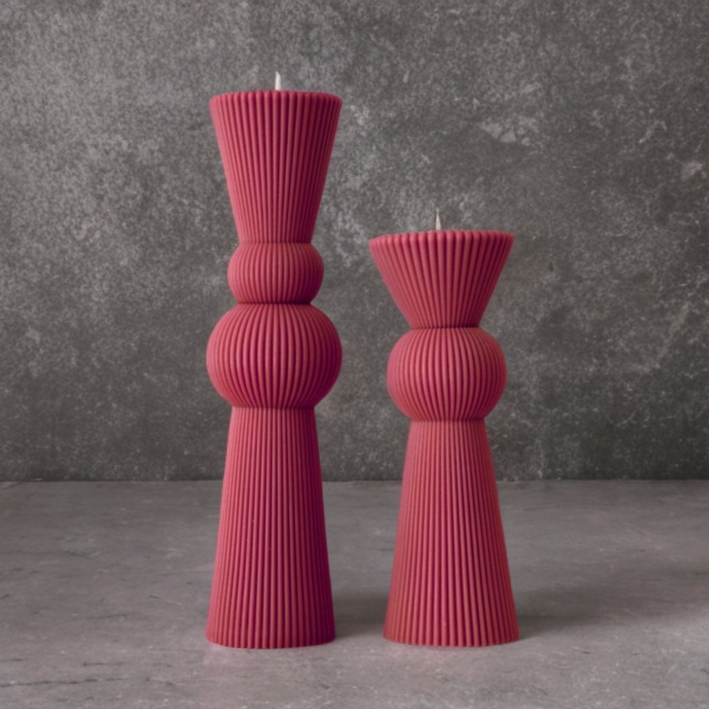 Set lumânări decorative / nuntă / botez, realizate prin turnare în matrițe, discret parfum, culoare magenta.