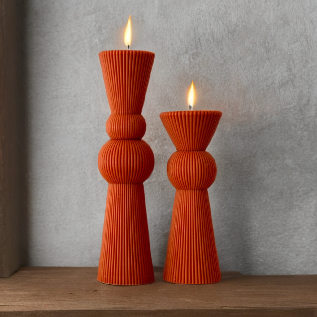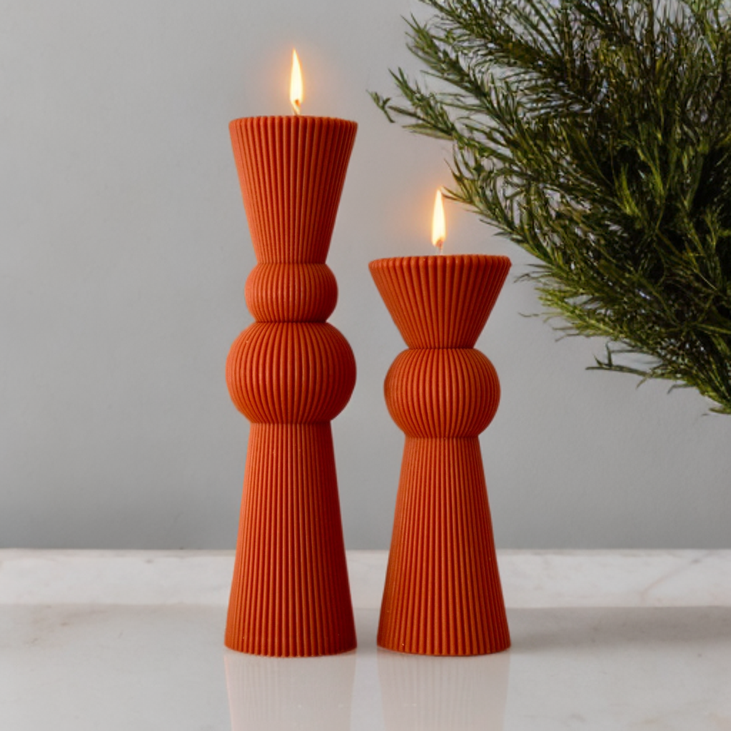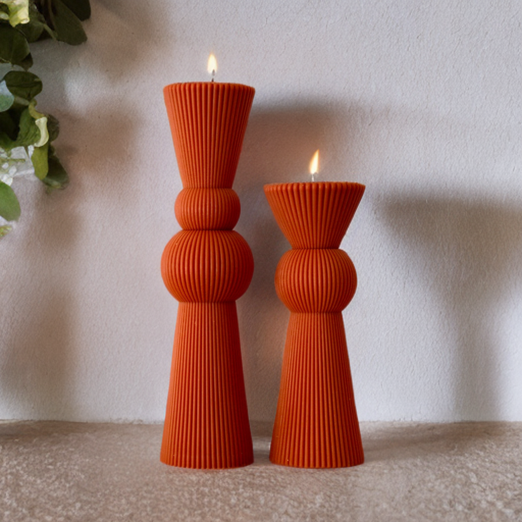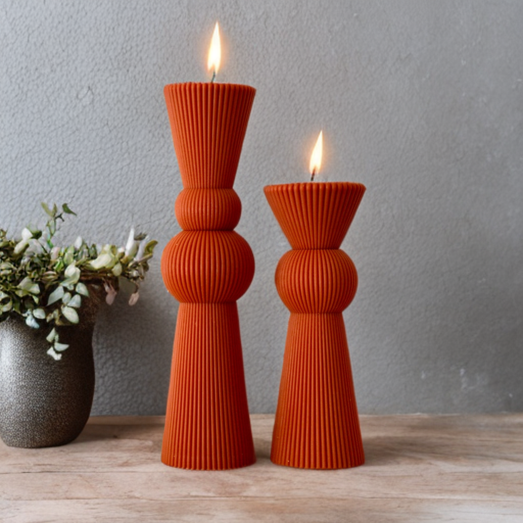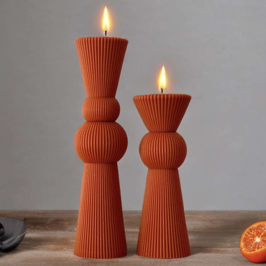 Set lumânări decorative / nuntă / botez, realizate prin turnare în matrițe, discret parfum, culoare terracotta.