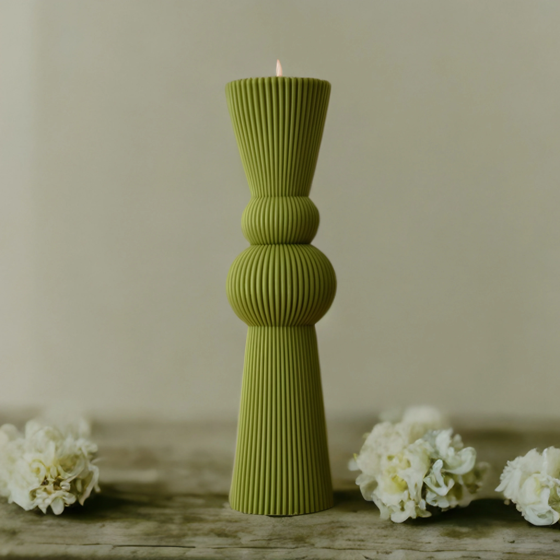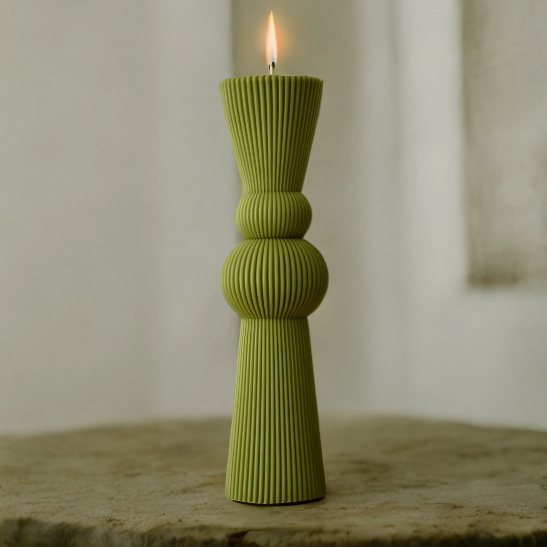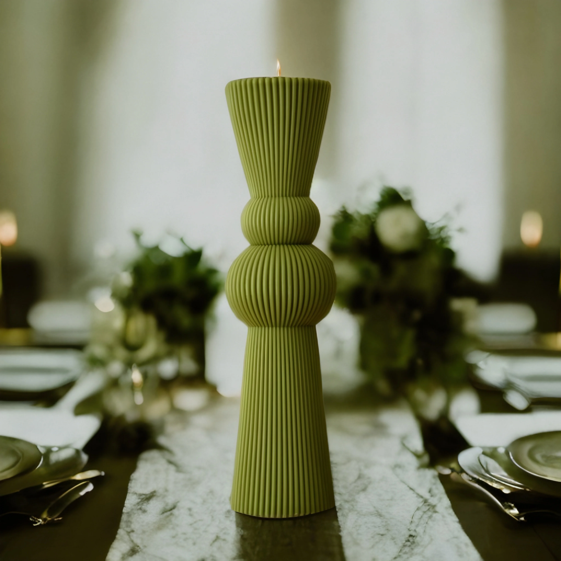 Elegant candle for wedding and baptism, made by molding, with a subtle fragrance and  color ochre pistachio. Decorative candles for any occasion.
