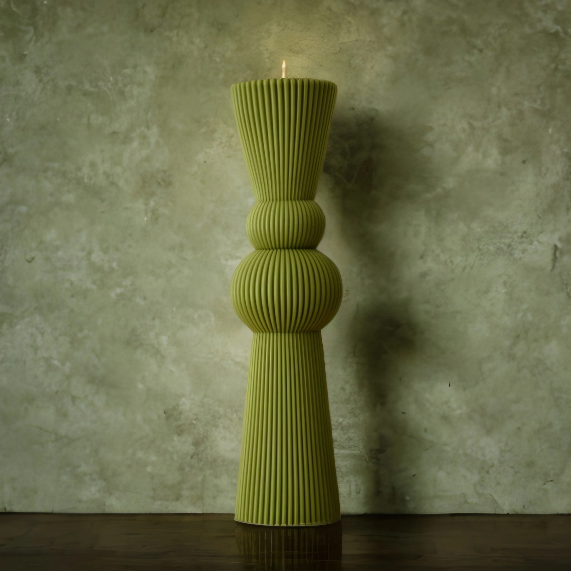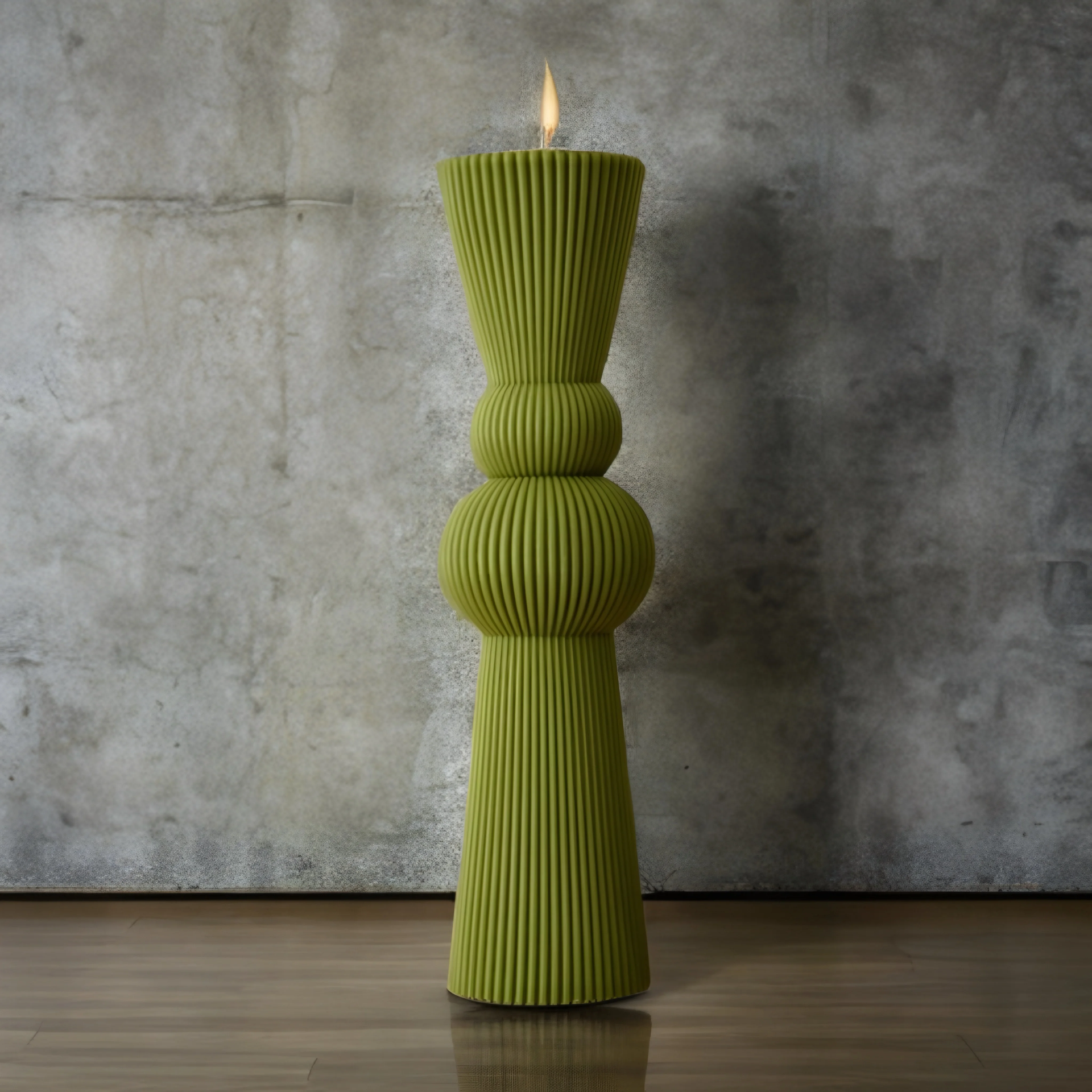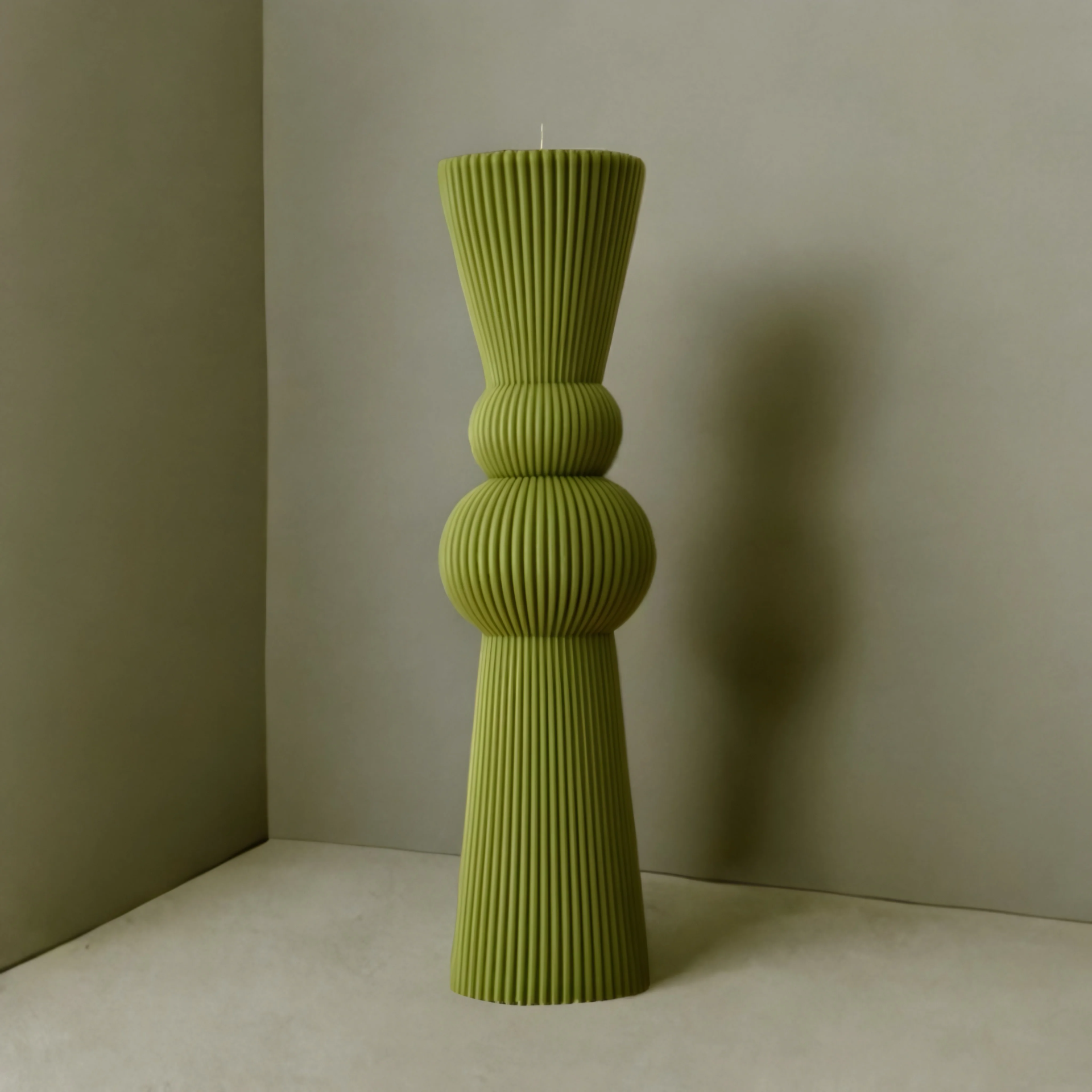 Elegant candle for wedding and baptism, made by molding, with a subtle fragrance and  color ochre pistachio. Decorative candles for any occasion.